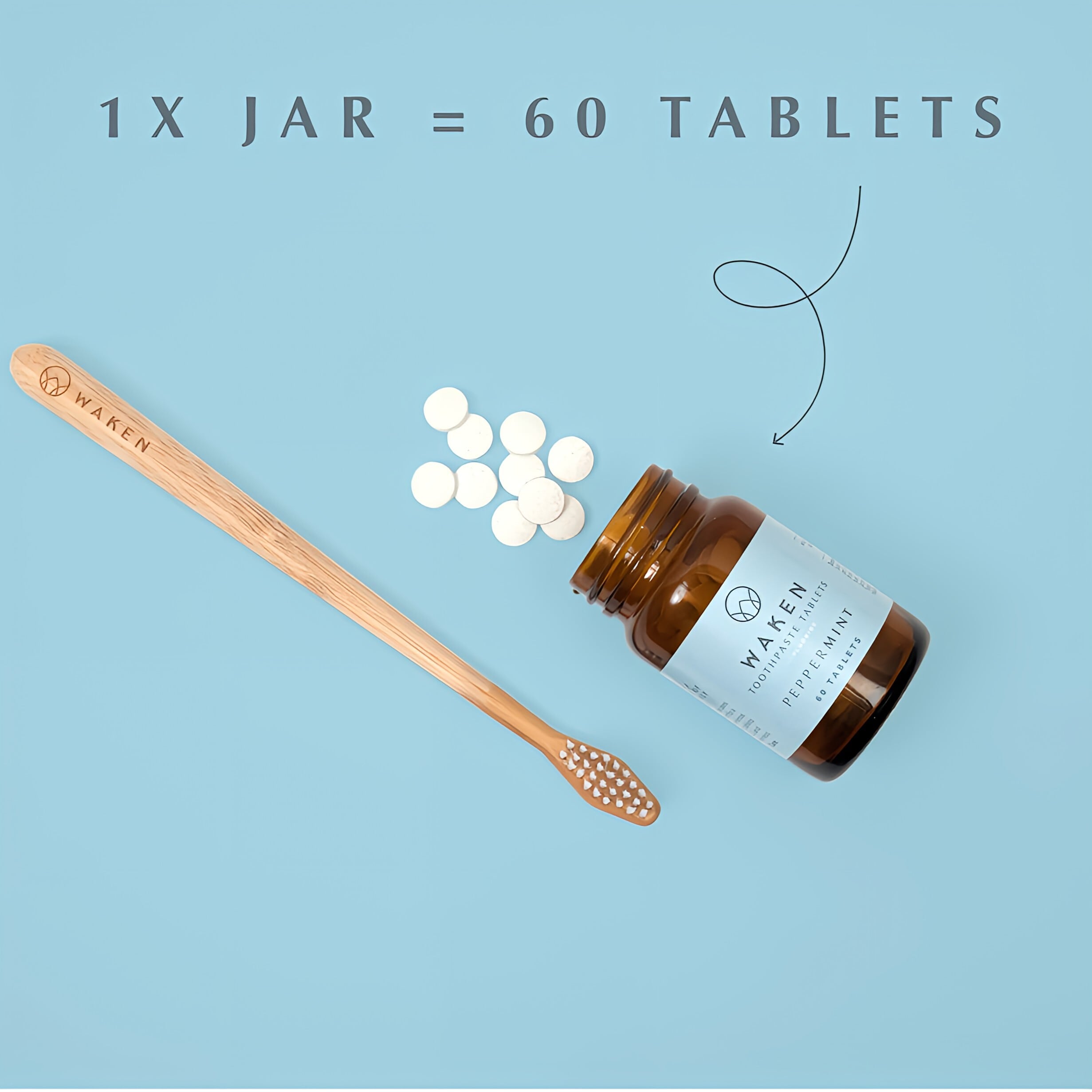 英国で最高品質基準に基づいて製造されたWaken ペパーミント歯磨き粉タブレットで、毎日の歯磨きが一層楽しく、環境にもやさしい習慣になります。